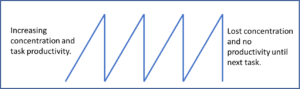 But this prioritisation doesn’t work unless it is accompanied by strong leadership, specifically a willingness to limit the number of things underway at any one time. Without a limit, everyone affected does a little bit of work on each initiative before stopping to move onto something else. With this style of work so much time is wasted trying to remember where you had got to last time that the productivity curve looks like this