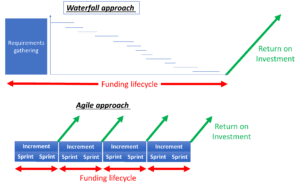 Firstly I explained the funding cycle for any project starts as soon as resources are committed, and only ends when all expenditure has been completed. In a traditional waterfall or PRINCE2® project the funding cycle runs from the requirements gathering to go-live.